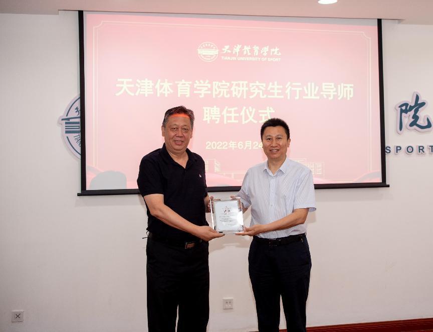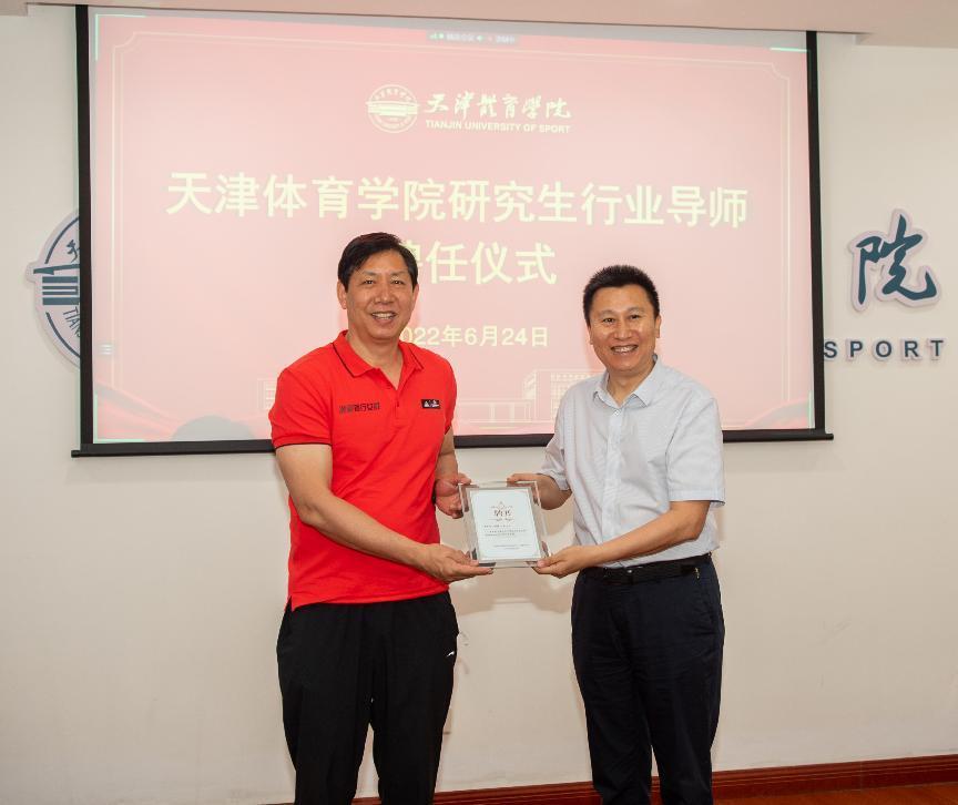 张欣为出席会议的行业导师代表、天津女排主教练王宝泉和天津市游泳运动管理中心主任宋志颁发聘书。