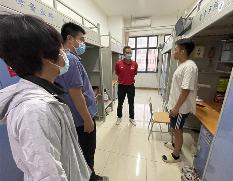 端午假期,党委书记张立顺深入一站式社区,走进体育文化学院学生宿舍,看望慰问在校学生。体育文化学院党政领导班子成员陪同。