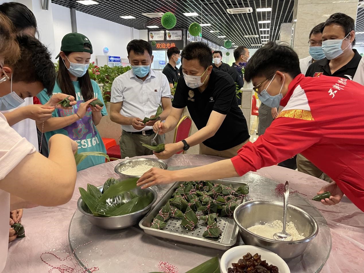 还专门采购了近8000斤冰糖麒麟西瓜,免费为1200余名在校学生每人发放了一个西瓜。学校食堂准备了各种馅料的粽子,满足师生们不同口味需求。各二级学院也分别组织开展了相关文化活动,为同学们发放了水果、粽子、饮料等慰问品。