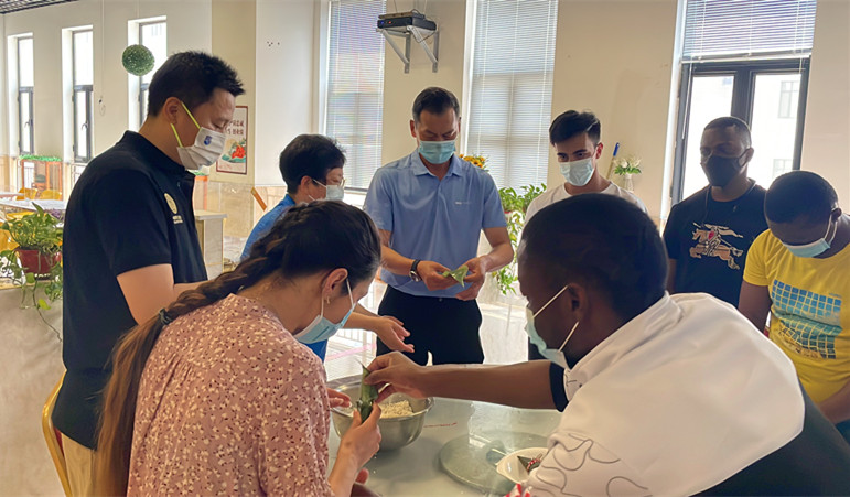 端午期间,领导们与师生在综合服务楼餐厅,开展了包粽子、庆端午活动。活动现场,师生们交流端午节习俗和粽子制作方法。大家纷纷折捏粽叶、填装糯米馅料、捆扎粽子。经过一个多小时的努力,一张张粽叶在一双双巧手中,变成了一个个可爱的“绿胖子”。活动现场欢声笑语,其乐融融。缕缕粽香,营造出浓浓的端午氛围,也让全校师生深入体会了传统文化的魅力。