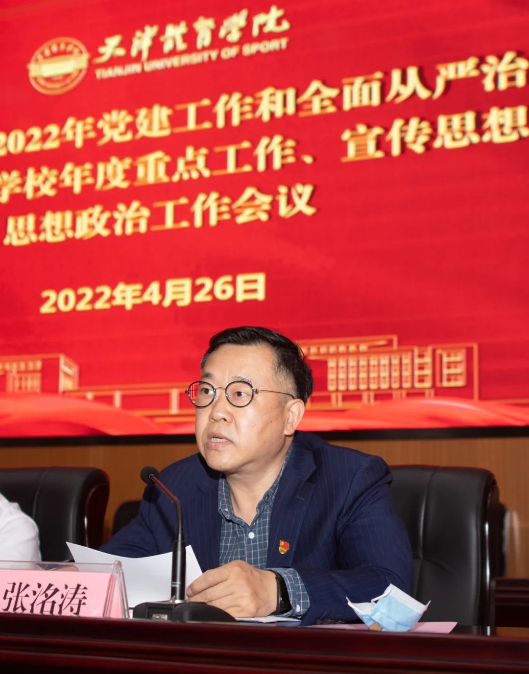 张立顺强调,做好2022年工作,一是要以习近平新时代中国特色社会主义思想为指引,练好全面从严治党这一基本功,做好思想政治和意识形态工作,以总体国家安全观为指导,确保校园政治安全和稳定;二是要提高思想认识,进一步解放思想、实事求是、与时俱进,要善于学习,主动思考健康中国、体育强国等国家战略及《关于构建更高水平的全民健身公共服务体系的意见》等文件政策与学校、部门和教职工个人之间的关联,不断更新思想观念、提高认知水平,并落在实践行动中;三是要坚持系统化的思维,加强体制机制建设,完善制度体系,各单位(部门)要做好抓牢基本,抓实基础,做到职责明晰、分工明确,将全年工作任务分解到人,通过日清周统月报制度和综合绩效考核改革有效推动各项工作落细落实;四是要坚持问题导向、目标导向、结果导向,深入开展调查研究,深化新时代教育评价改革,针对学科专业课程建设中存在的问题,研究制定可行方案,拿出有效措施,建设一支“四有”“六要”教师队伍和担当作为、创新竞进的干部队伍,用一流的师资和精细化管理来培养一流的学生;五是对全年工作要做到未雨绸缪、超前谋划,坚持高标准、严要求,各单位(部门)要制定年度目标任务和考核方式,确保工作持续性,真实反映工作效能效果,以优异成绩迎接党的二十大胜利召开。