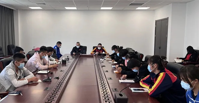赛艇队在江苏泰州外训基地召开“学习北京冬奥精神”主题队会,认真学习习近平总书记在北京冬奥会、冬残奥会总结表彰大会上的重要讲话精神。副院长张欣通过视频方式参加。