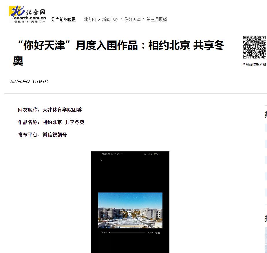 团委微信视频号参赛作品《相约北京、共享冬奥》入围。