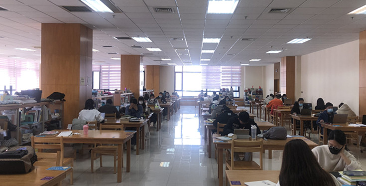 图书馆在严格遵守防疫要求前提下,保证每天8:00-22:00正常开馆,做到每日开放空间定时通风消毒,读者间保持安全距离,营造舒适温馨阅读环境。馆内歌德借阅机、电子读报机、图书检索机、图书消毒机等电子设备正常运行使用。同时,为配合线上教学需要,图书馆在保证电子资源24小时校内外正常使用前提下,持续深入为全校各教学单位提供线上信息检索和咨询服务,并利用微信、QQ、邮件等多种渠道,畅通与读者的互动交流。