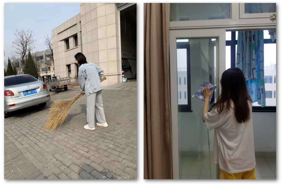 体育文化学院的同学们在新学期,参与接站服务,同学共同维护宿舍清洁,对宿舍进行消杀打扫清整等活动。