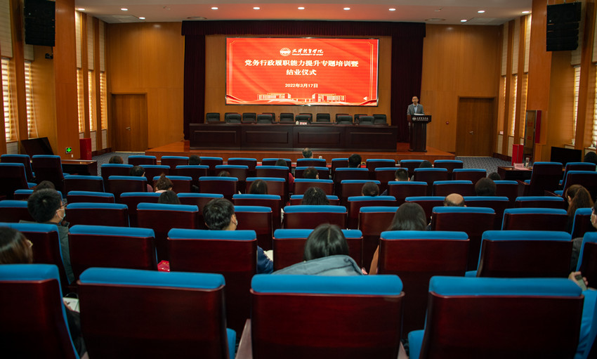 党务行政履职能力提升专题培训暨结业仪式在行政楼报告厅举行。校党委副书记、院长吉承恕出席,各二级教学单位和教辅单位办公室主任、行政秘书、纪检员、组织员参会。