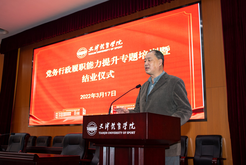 结业式上,吉承恕为参培学员代表颁发了结业证书,4名学员代表交流了培训体会。吉承恕在结业式讲话中强调,全体参培同志要提高政治站位,坚定捍卫“两个确立”,坚决做到“两个维护”,深刻理解新时代树立正确世界观、人生观、价值观的重要意义;要努力做学习型干部,通过学习不断提升自我、改造自我,激发自身内在潜能,把握高校管理规律,做好本职工作;要树牢以学生为中心的理念,全面落实“三全育人”,敢于担当、善于作为,服务学生全面发展。他勉励与会同志特别是年轻干部,要心怀梦想、不负青春、奋发有为,努力成为教育管理的行家、专家、大家,为建设世界一流体育大学,实现健康中国、体育强国战略目标做出应有贡献。