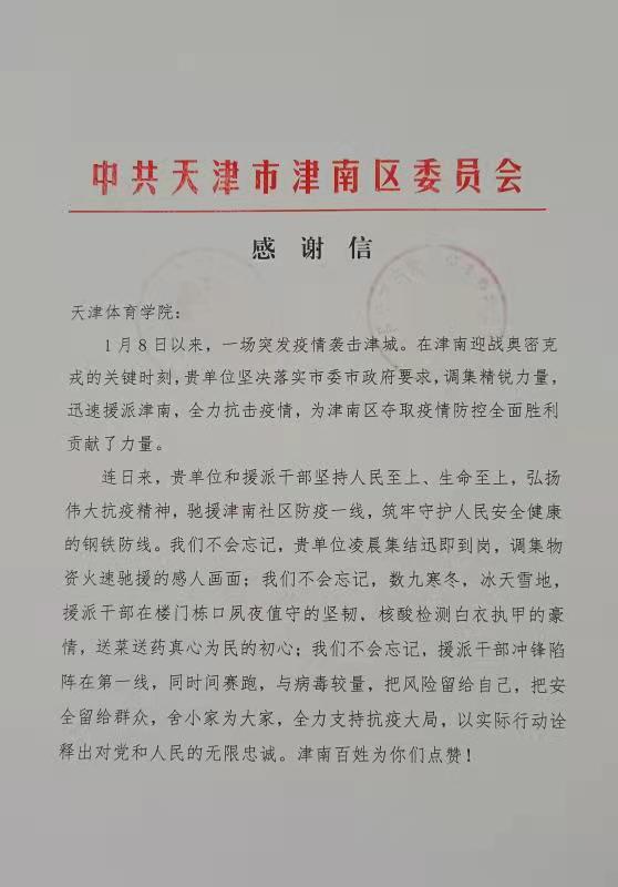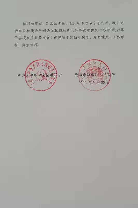 和援派干部坚决落实市委市政府要求,迅速驰援津南防疫一线,全力支持抗疫大局致以崇高敬意和衷心感谢。