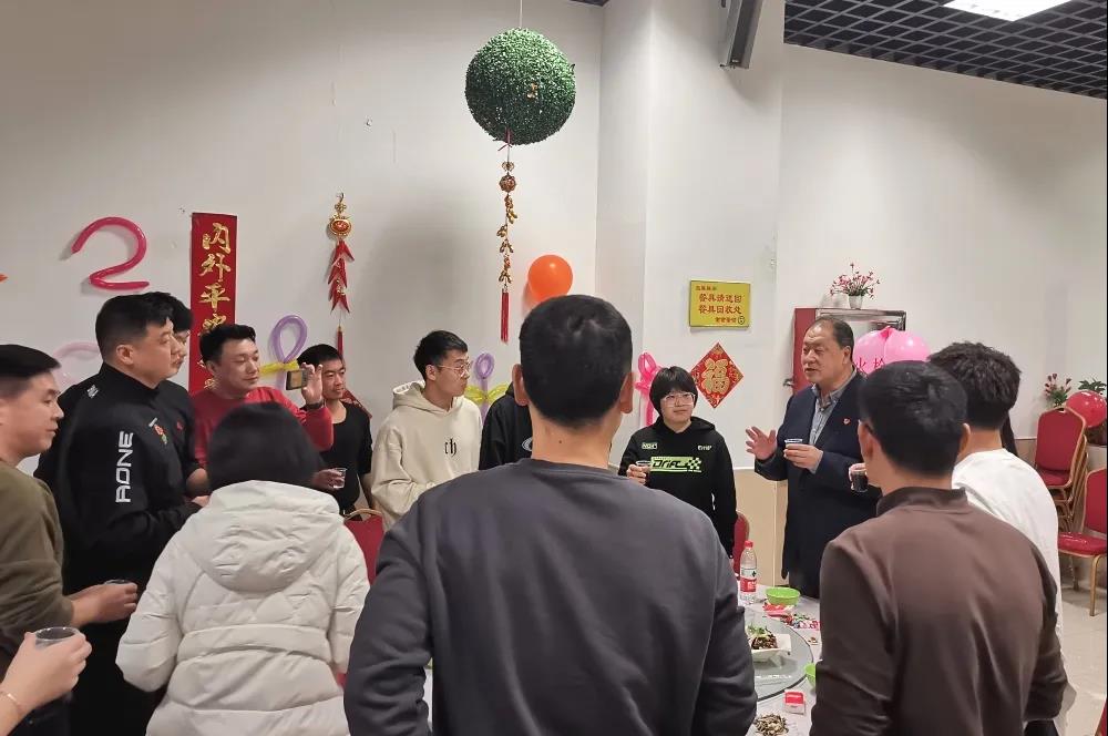 师生共进年夜饭。吉承恕致辞,他代表学校向全体留校学生及家人们送去真挚的新年祝福,祝愿大家虎虎生威、如虎添翼、再创佳绩。