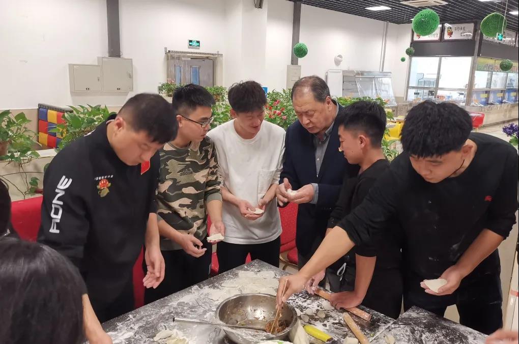 师生一起包饺子,吉承恕对学生进行悉心指导,大家配合默契、有说有笑,现场氛围其乐融融。