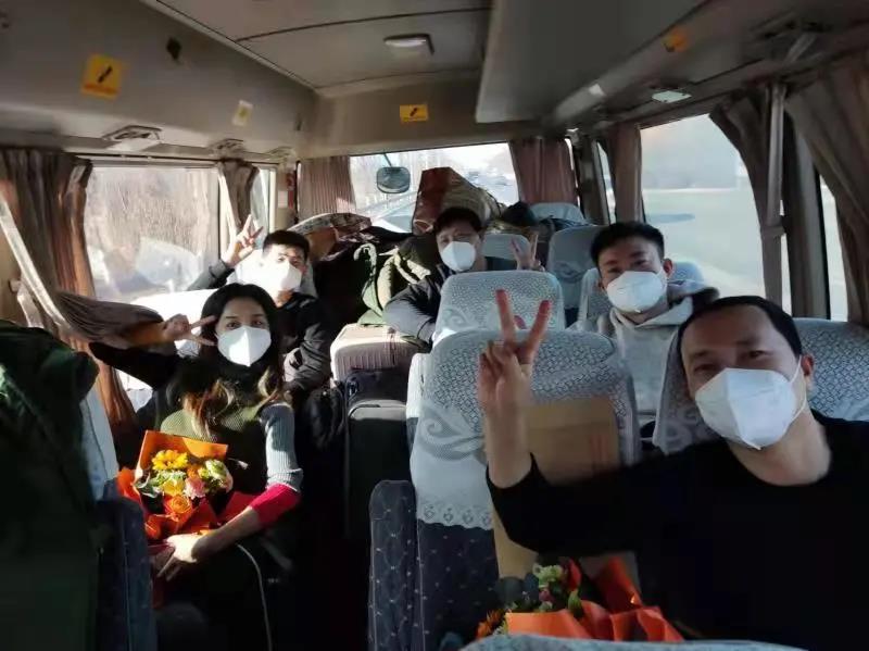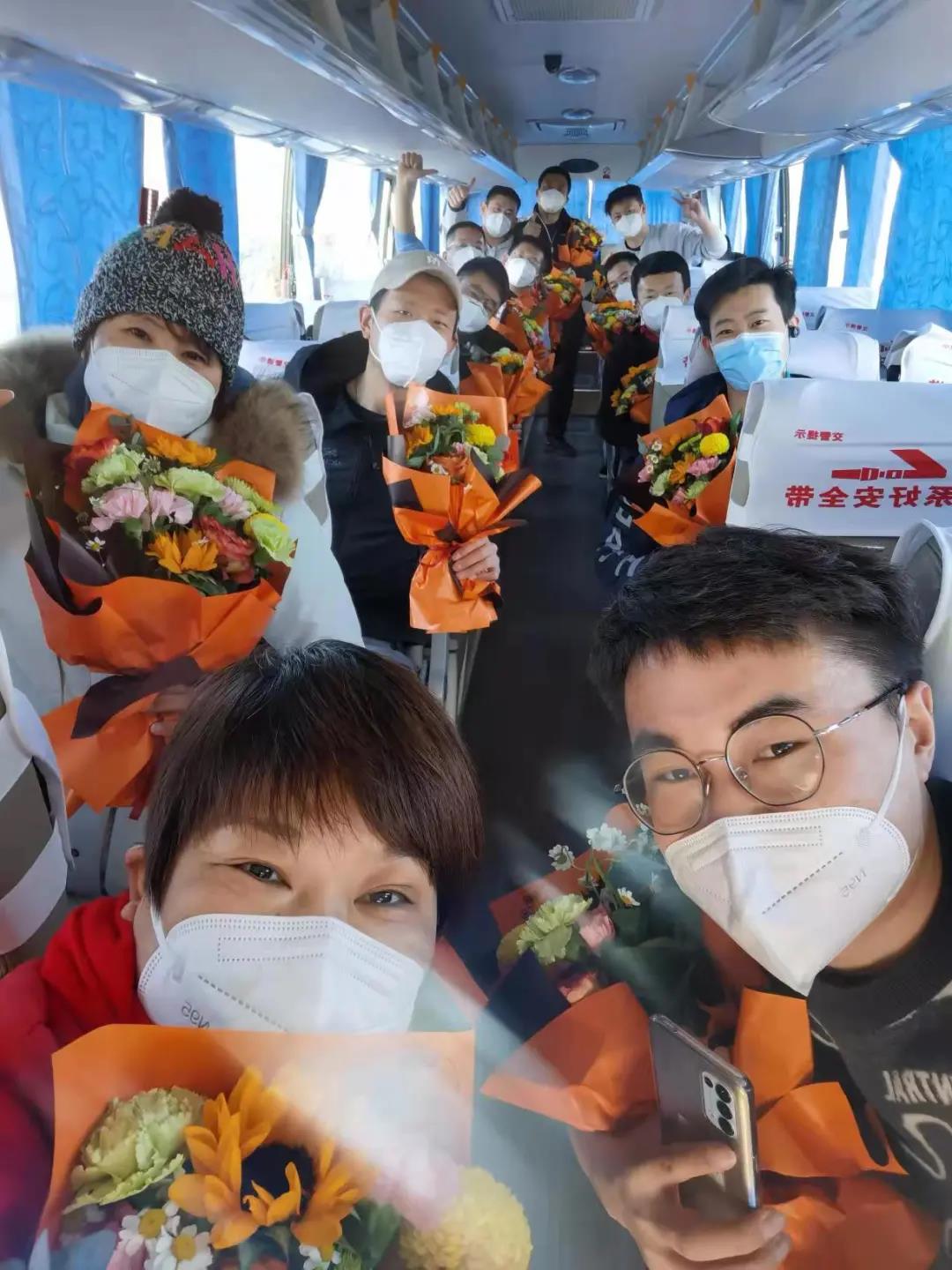 20名党员干部教师凯旋,学校安排两辆专车统一转运,一一护送到家。
