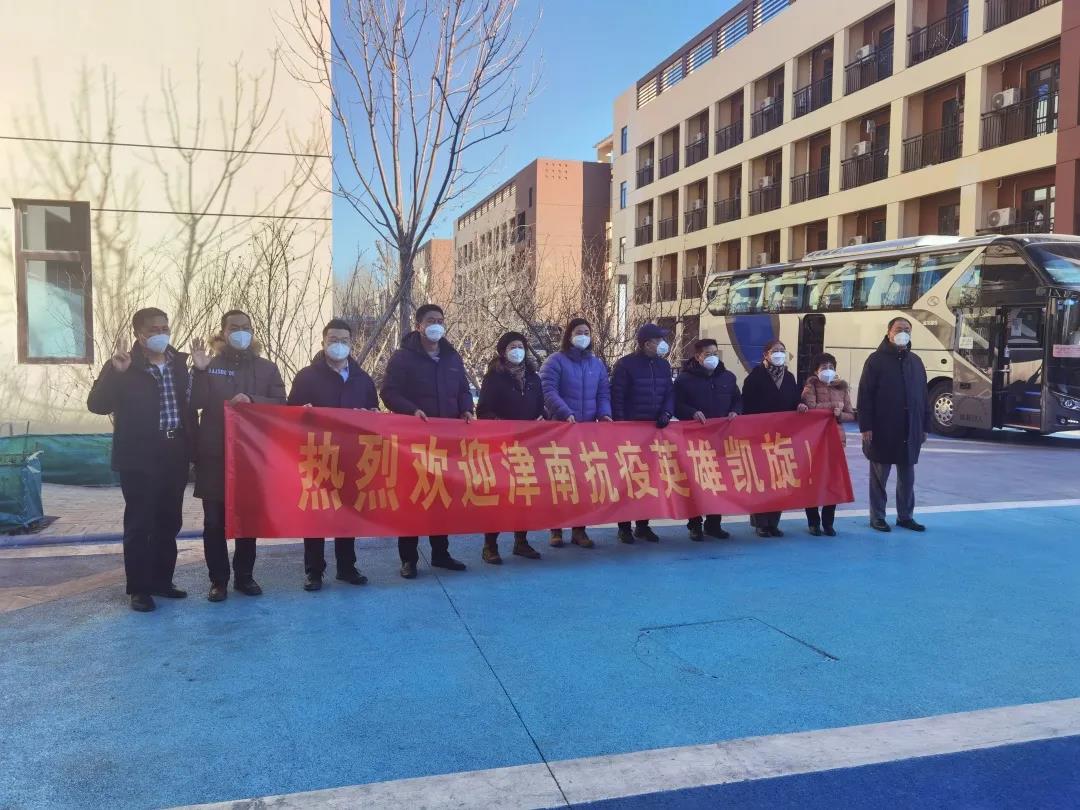 党委副书记、院长吉承恕和有关部门、单位负责同志组成的迎接团队,热烈欢迎圆满完成津南抗疫任务的情色视频