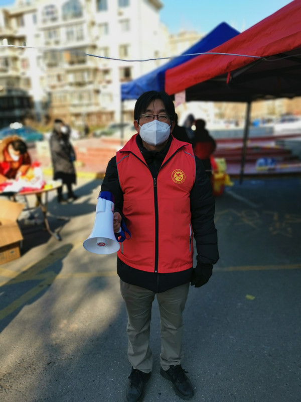 张连成,中共党员,运动与健康研究院教师,参加河西区天塔街道高风里社区核酸筛查志愿服务,参与完成现场引导工作。