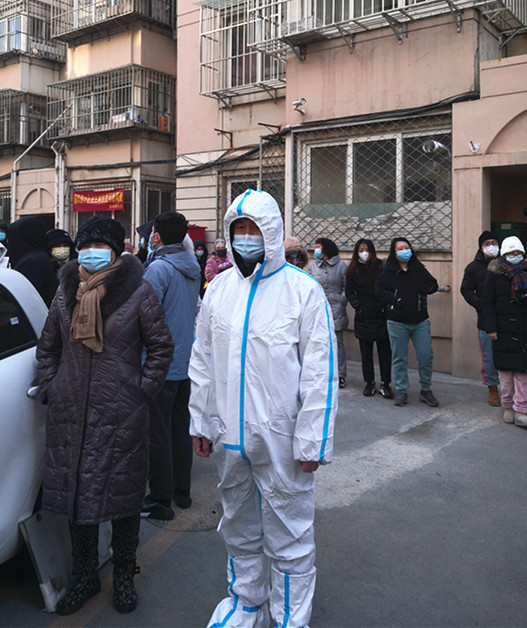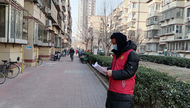 宋鑫,中共党员,大众健身指导与管理教研室教师,在西青区精武镇汇英苑社区负责入户核对居民信息和核酸筛查现场秩序维护。