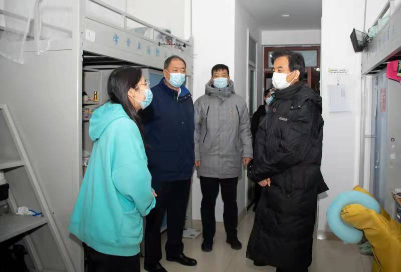 督导检查疫情防控工作,天津市教委副主任郝奎刚,党委副书记、院长吉承恕,副院长张欣、张卫国,市纪委监委派驻纪检监察组组长张洺涛陪同检查。