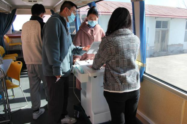 运动健康学院师生团队为陈官屯中学40余名教师进行身体成分、骨密度、糖尿病风险等多项检测,并实时出具健康检测报告。