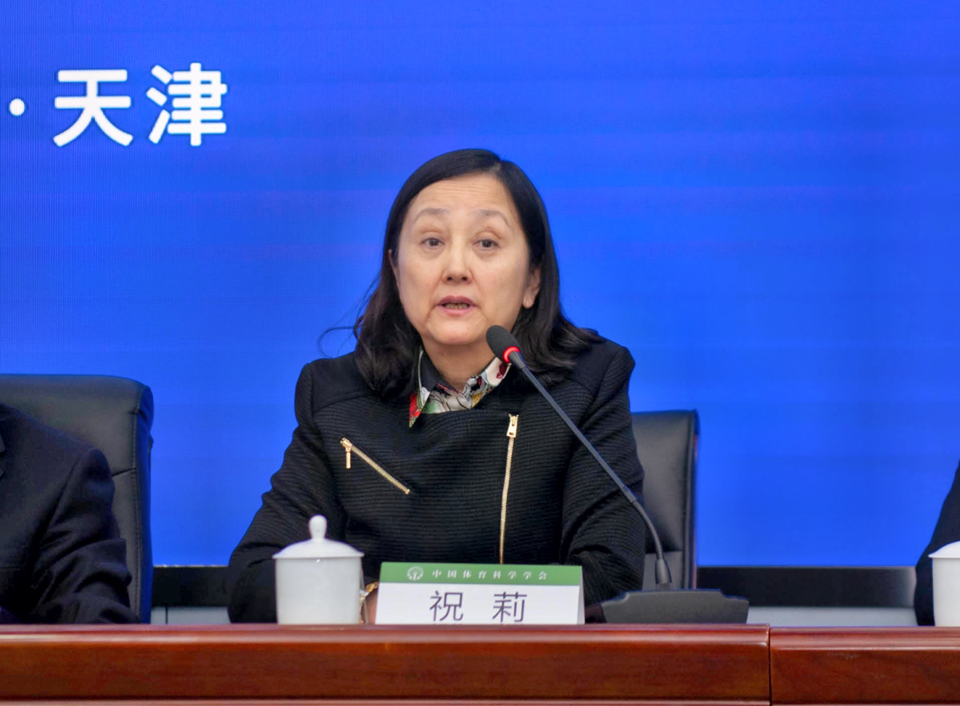 承办;分会场由中国体育科学学会27个分支机构主办,南开大学、天津大学、天津师范大学、天津工业大学、天津理工大学、天津中医药大学、天津城建大学、天津体育职业学院8家高等院校分别承办。本届大会交流形式为大会报告、专题报告、电子墙报交流、书面交流。本届大会会议会场设置大会开幕式、大会主报告会场、专题口头报告会场、国际学术交流会场、电子墙报展示会场、热点沙龙会场、体育科技成果展览展示会场及体育科技人才交流会场。本届大会在办会模式、办会形式与运行机制方面进行了创新,预计未来参会人数将达到15000人。祝莉强调,本届大会将新发展理念贯穿其中,呈现出了创新性、开放性、协同性和共享性四大特点。