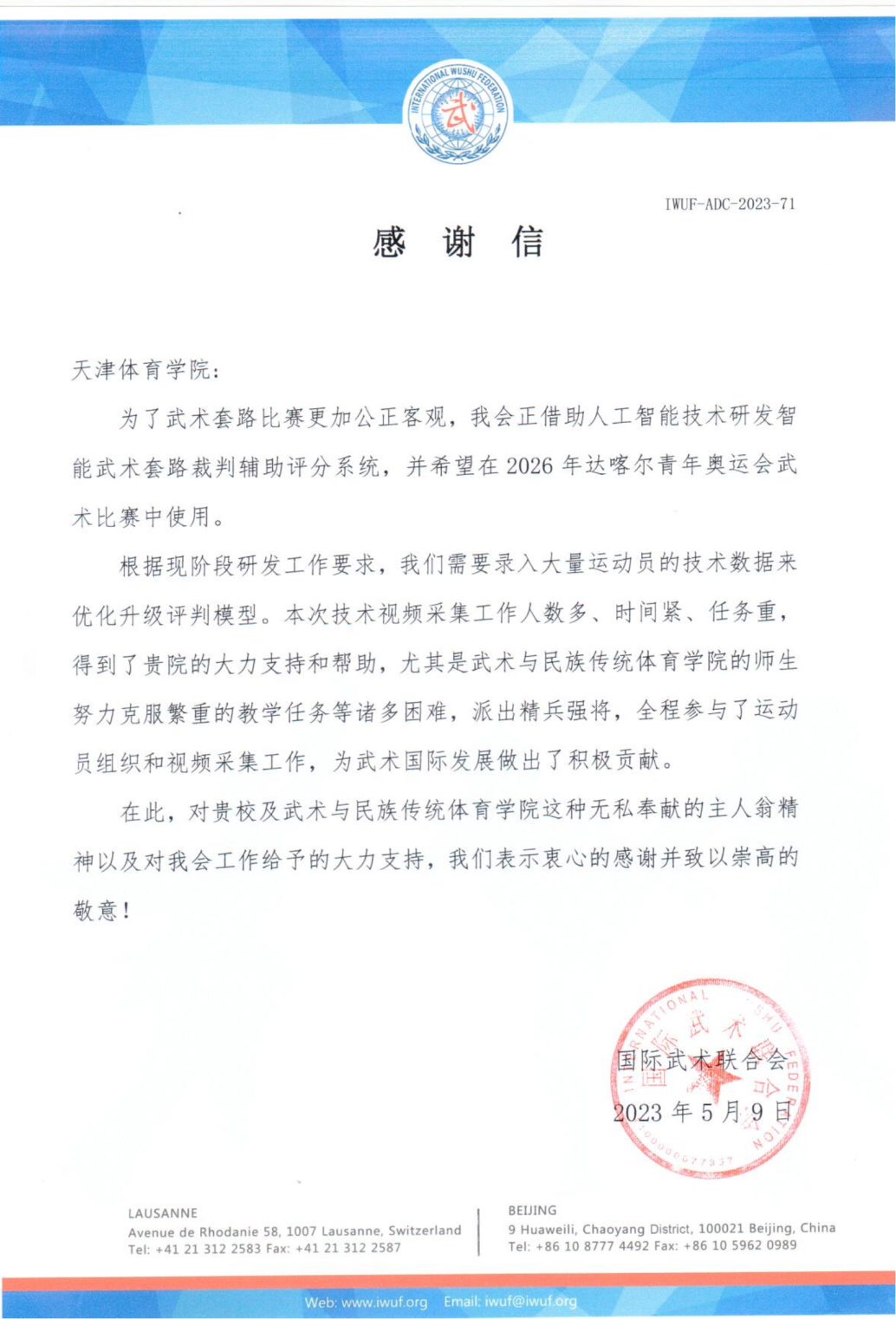 参与智能武术套路裁判辅助评分系统相关建设工作表示感谢。