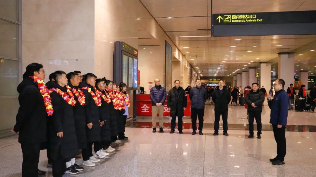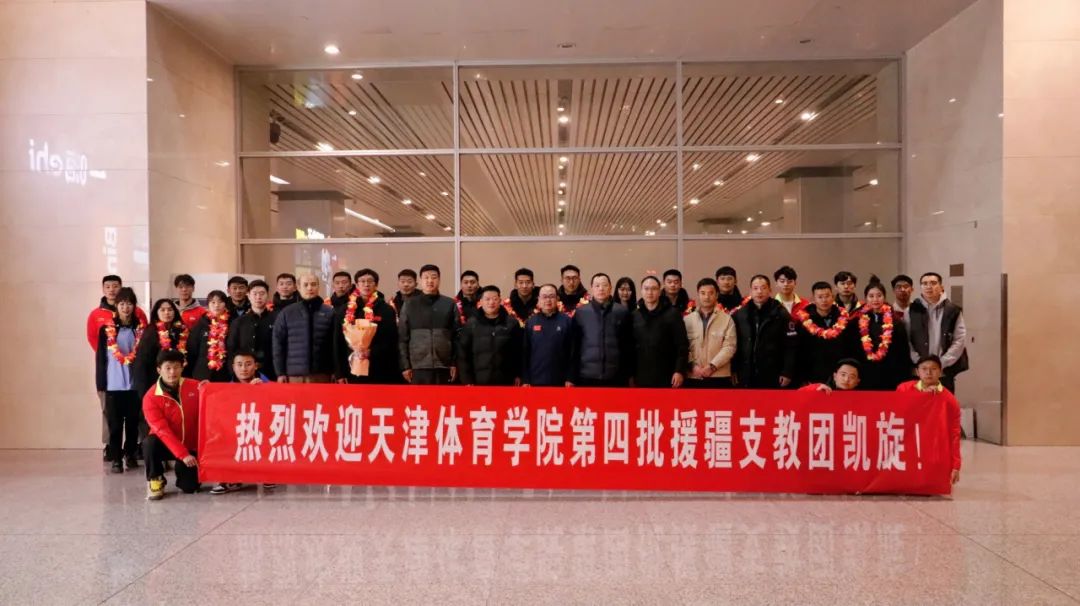 第四批援疆实习支教团16名师生圆满完成为期三个半月的实习支教工作,从新疆和田地区返津。校党委副书记宋爱军,党委学工部负责同志,运动训练学院领导班子成员、辅导员和学生代表一行,在天津滨海国际机场大厅迎接支教团载誉归来。