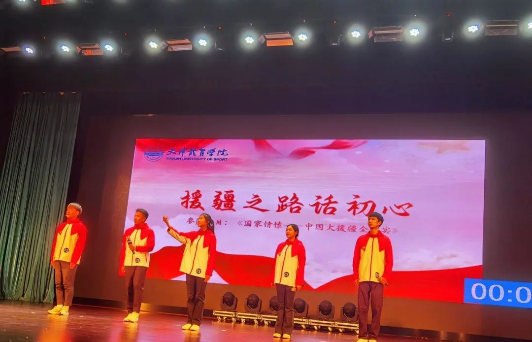 宣讲团队由体育教育学院2022级体育教学专业5名研究生组成。在以《援疆之路话初心》为题的宣讲中,5名同学讲述了2023年上半年赴新疆和田地区策勒县开展支教,促进津和两地人民相亲相爱、互帮互助的经历,鼓励青年大学生们到西部去、到基层去,让生命之花盛开在祖国最需要的地方。