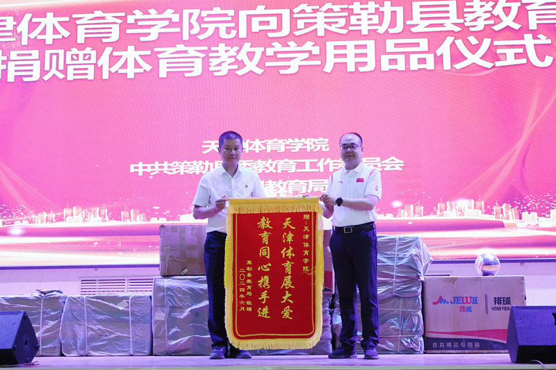 资助策勒县教育局体育教学用品捐赠仪式,表达学校对策勒县教育事业、体育事业高质量发展的支持。