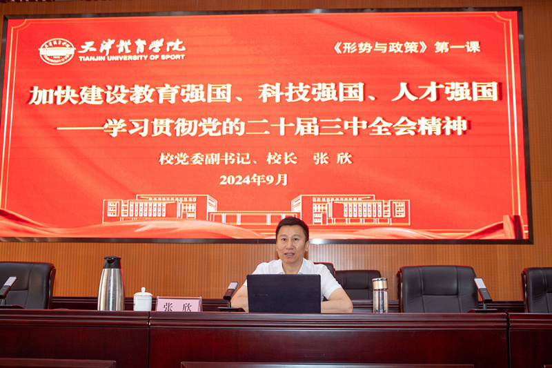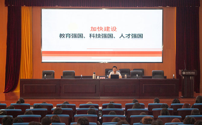 本科生代表讲授形势与政策第一课,宣讲党的二十届三中全会精神,全面阐释教育、科技、人才在全面建设社会主义现代化国家中的地位作用和相互关系,教育引导大学生深刻认识新时代加快建设教育强国、科技强国、人才强国的历史使命。