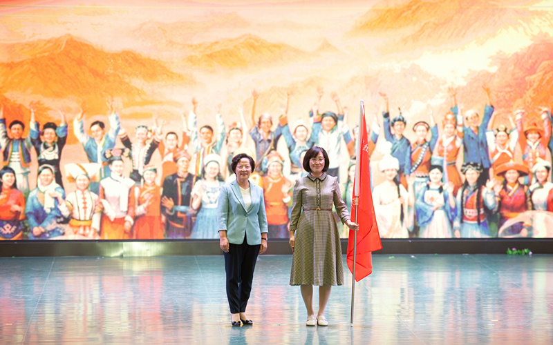 在“红石榴”铸牢中华民族共同体意识宣讲团成立仪式上,党委常委、副院长赵霞为宣讲团授旗,党委常委、党委统战部部长依惠琴为宣讲团指导教师颁发聘书,党委学生工作部部长田向国、校团委书记单小红为宣讲团成员颁发聘书。此外,党委常委、党委组织部部长罗秀伟为民族团结进步故事情景剧大赛入围团队代表颁奖。“红石榴”铸牢中华民族共同体意识宣讲团旨在以铸牢中华民族共同体意识为主线,立足青年学生视角,讲述民族团结故事,宣传民族政策,促进各族师生交往交流交融。展演活动暨宣讲团成立仪式在舞蹈《华夏欢歌》中落下帷幕。