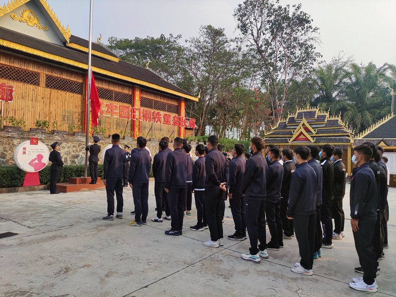 橄榄球队与冬训驻地的勐景来边防派出所、村寨和景区企业联建党支部,联合开展“弘扬爱国主义、共建和谐边疆”主题党日活动。