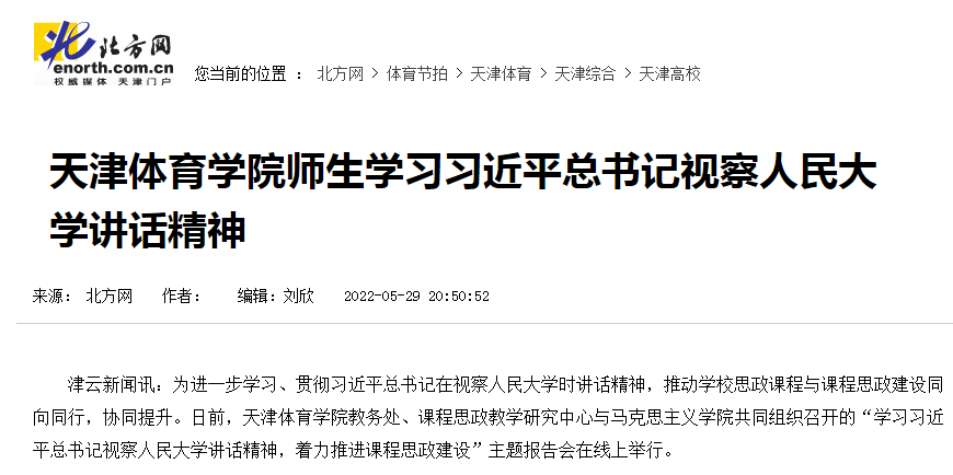 为深入学习贯彻习近平总书记在中国人民大学考察时的重要讲话精神,推动情色视频 思政课程与课程思政建设同向同行、协同提升,日前,情色视频 召开学习习近平总书记在中国人民大学考察时的重要讲话精神主题报告会。5月29日,津云、北方网对此进行了报道。