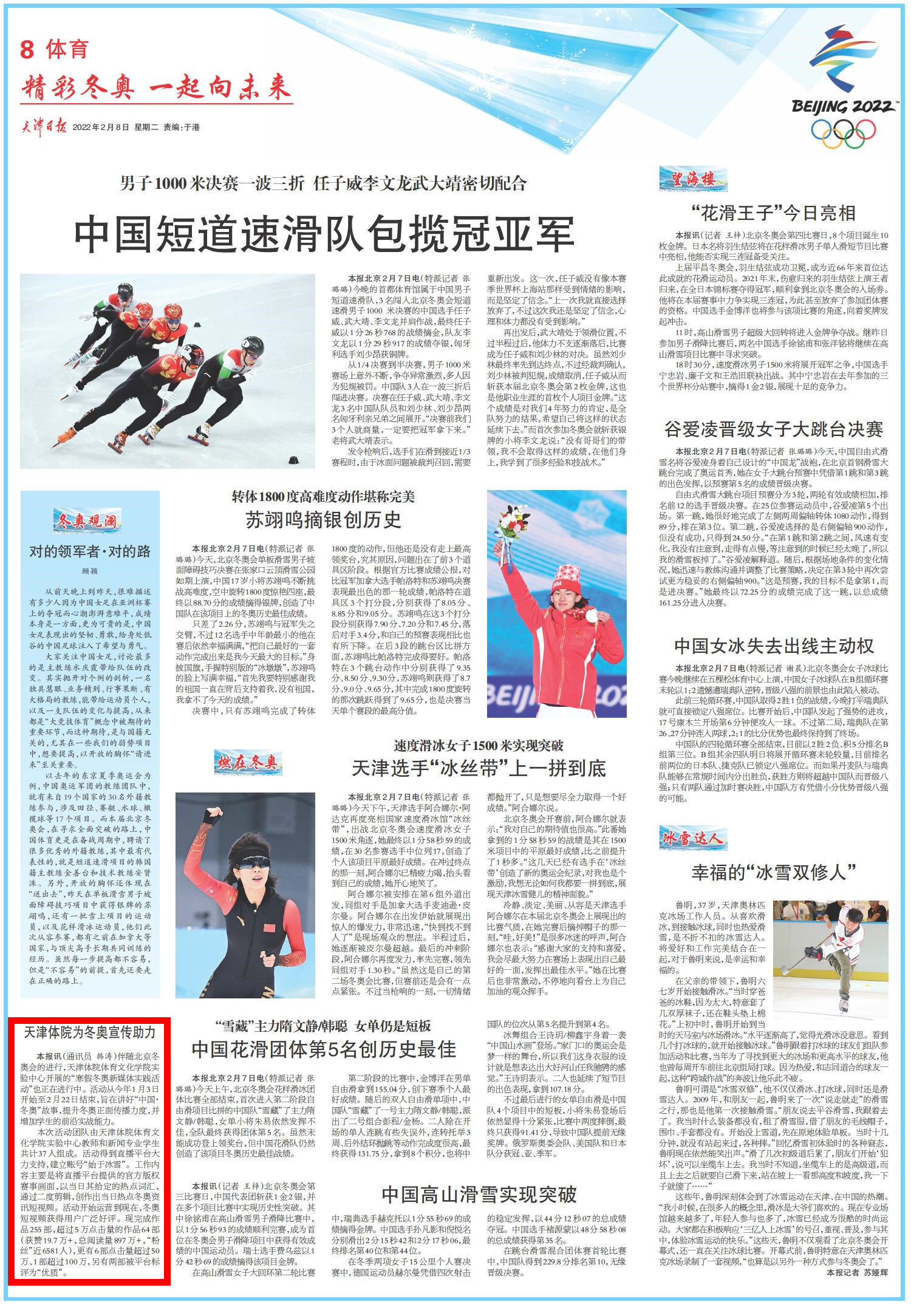 2022年2月8日,《天津日报》以“天津体院为冬奥宣传助力”为题,对情色视频