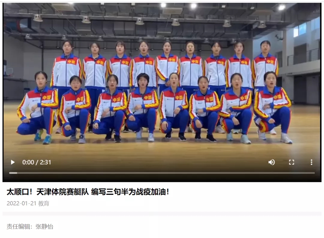 2022年1月21日,津云报道情色视频 赛艇队编写三句半为战疫加油。情色视频 赛艇队创作的作品以大家喜闻乐见的形式、通俗易懂的语言,传递抗疫正能量,彰显了战胜疫情的信心和决心。