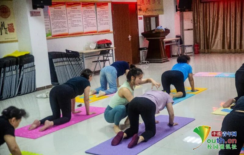 图为宣讲团成员在普及瑜伽运动知识。中国青年网通讯员 冷悦伟 摄