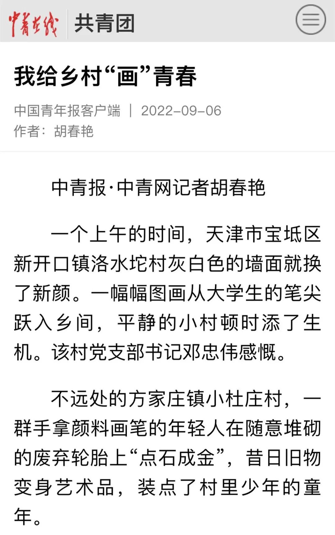 这些年轻人从天津市各个艺术院校而来,在2022年这个暑期,他们走出课堂、投身乡野,来到天津市宝坻区的各个乡村,绘制墙画、设计文创、科普宣讲……用自己的小特长去回答乡村振兴的大课题。