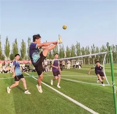 对抗赛之后,组织者还安排了踢球入筐、脚踢“保龄球”、障碍过杆等趣味游戏,让同学们亲身体验藤球的乐趣。