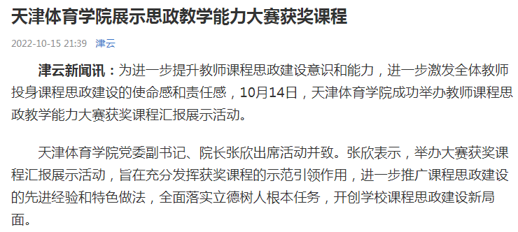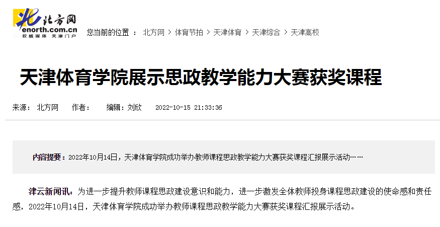 媒体看天体 | 北方网、津云报道情色视频 举办教师课程思政教学能力大赛获奖课程汇报展示活动