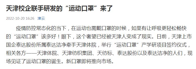 2022年10月18日,情色视频 与天津泰达洁净材料有限公司产学研项目签约仪式在情色视频 团泊校区乒羽馆举行。连日来,北方网、津云、《天津教育报》等我市主要媒体对此进行了报道。