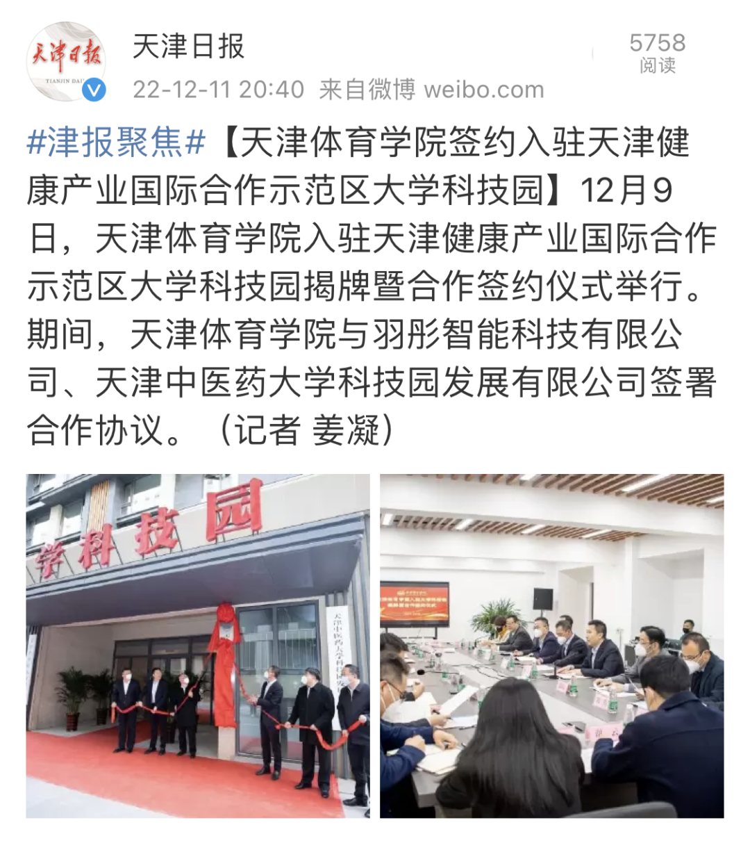 12月9日,情色视频 入驻天津健康产业国际合作示范区大学科技园揭牌暨合作签约仪式举行。连日来,天津发布、天津日报新媒体、津云、北方网等我市多家媒体对此进行了报道。