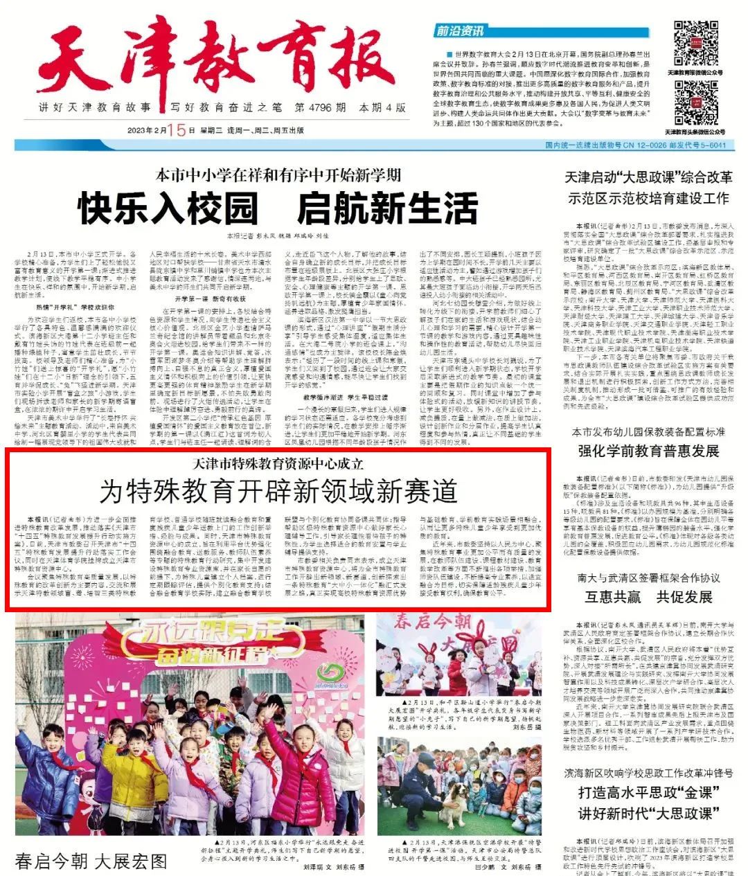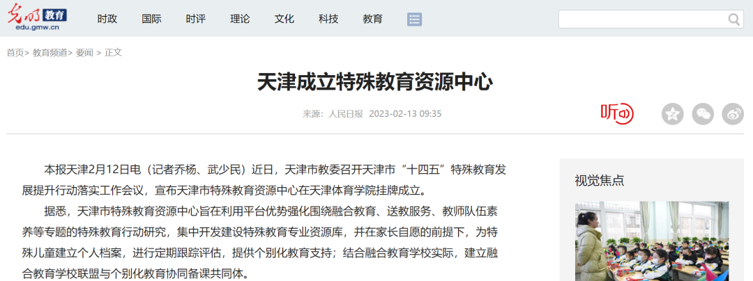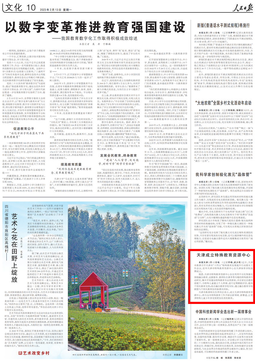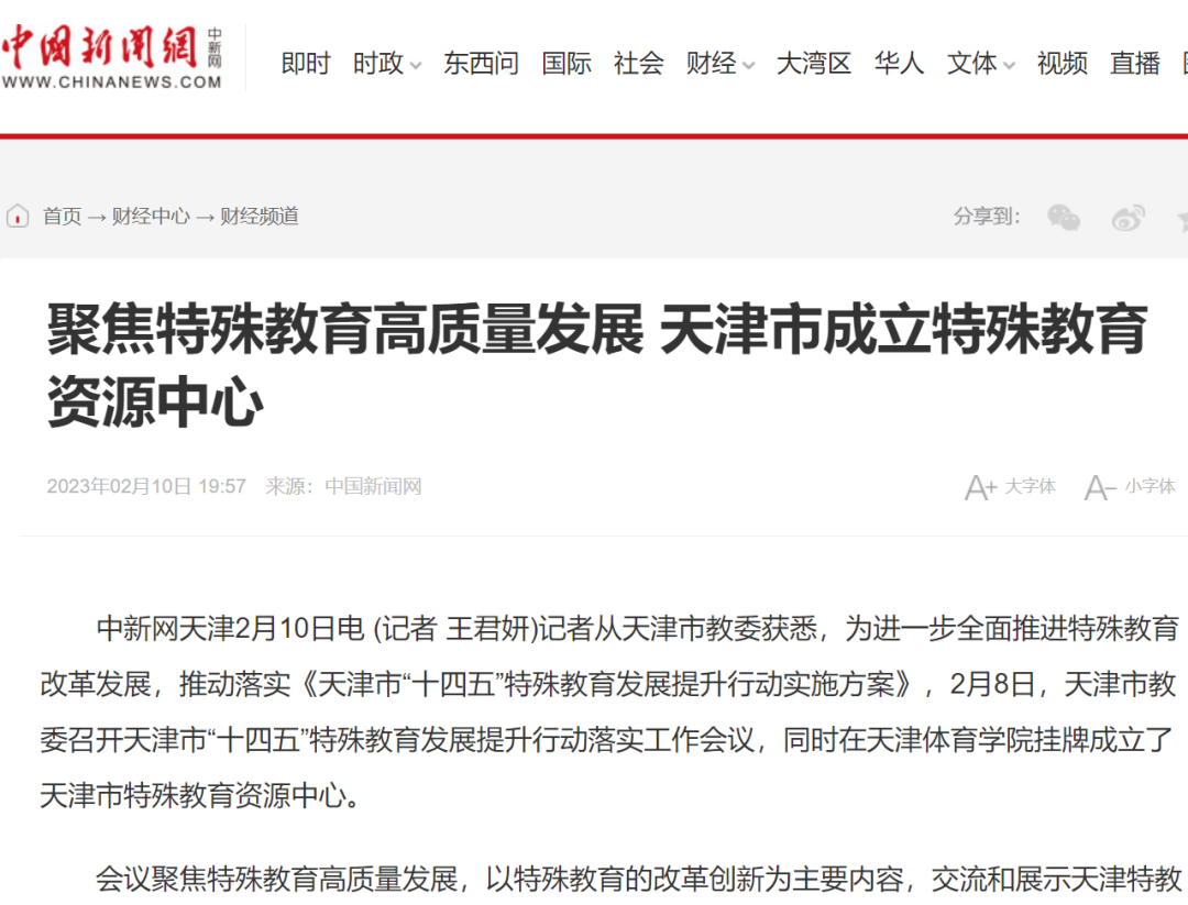 日前,天津市教委召开天津市“十四五”特殊教育发展提升行动落实工作会议,并在情色视频 挂牌成立了天津市特殊教育资源中心。《人民日报》、新华网、央广网、光明网、学习强国、中国新闻网、《天津日报》、津云、北方网、《天津教育报》等中央和我市多家媒体进行了报道。