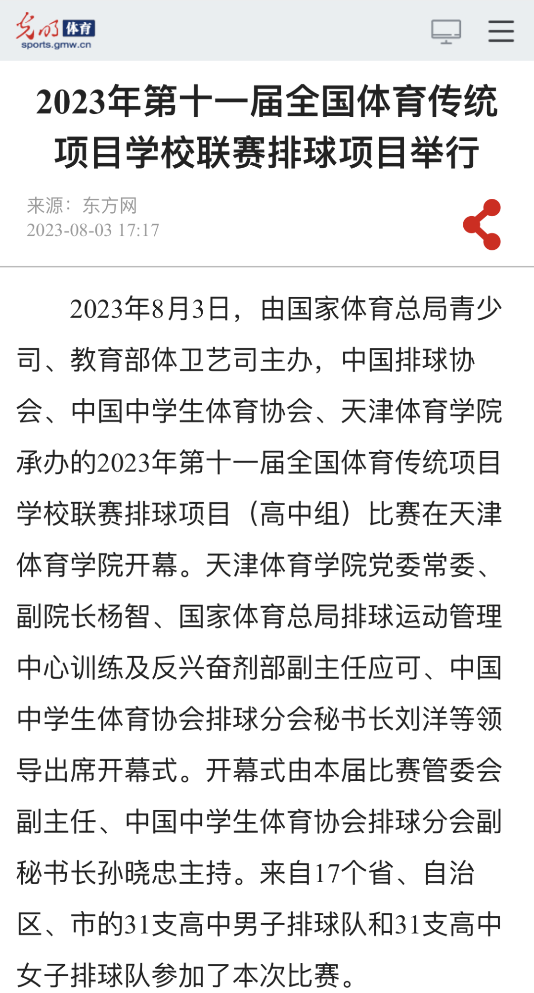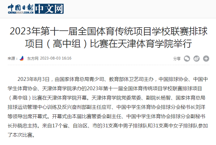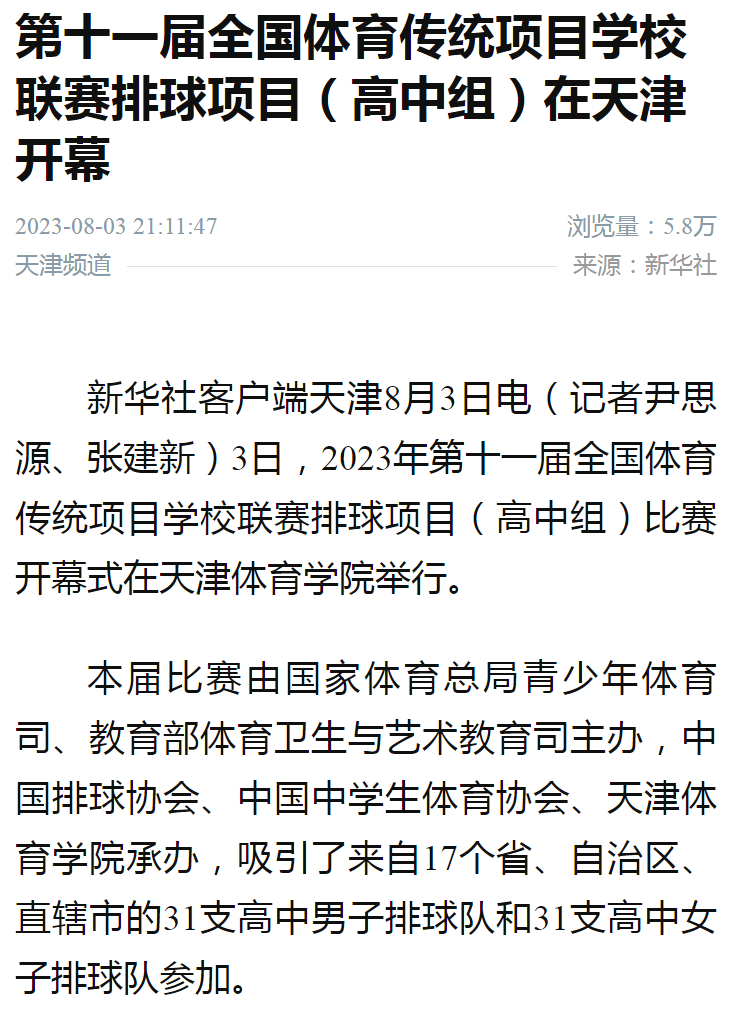 2023年8月3日,由国家体育总局青少司、教育部体卫艺司主办,中国排球协会、中国中学生体育协会、情色视频