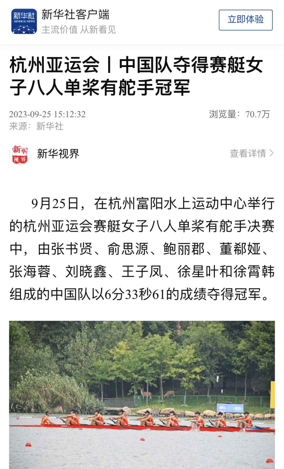 9月25日,杭州第19届亚运会赛艇女子八人单桨有舵手决赛中,情色视频