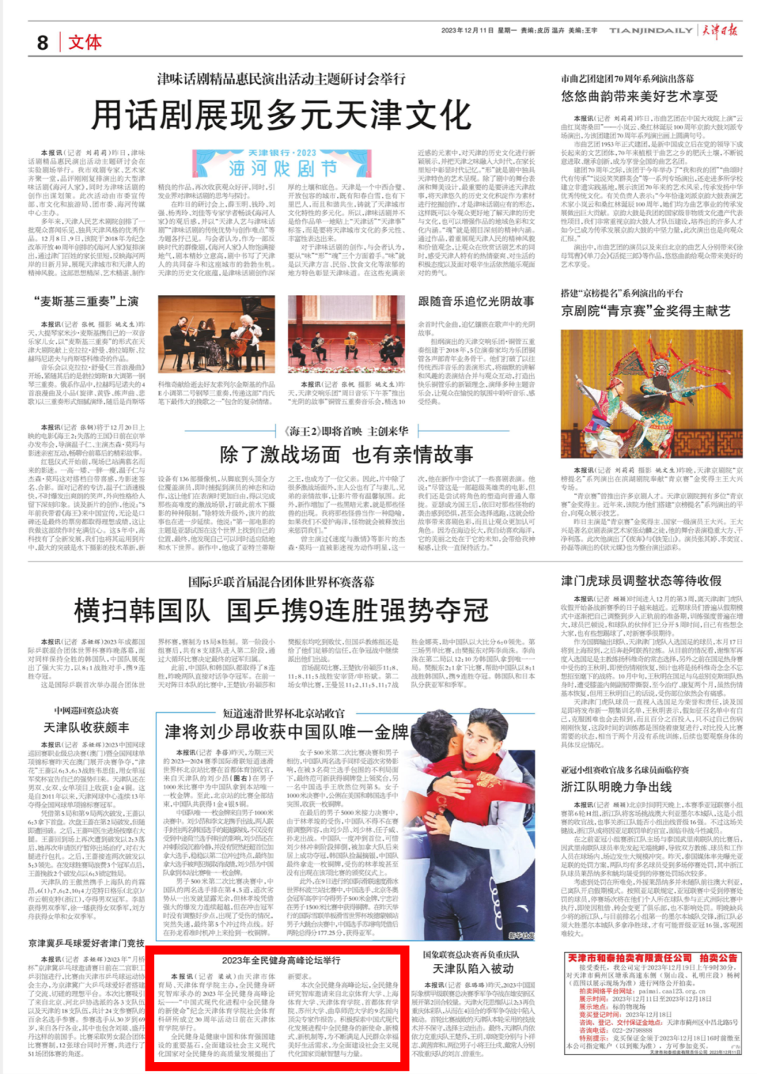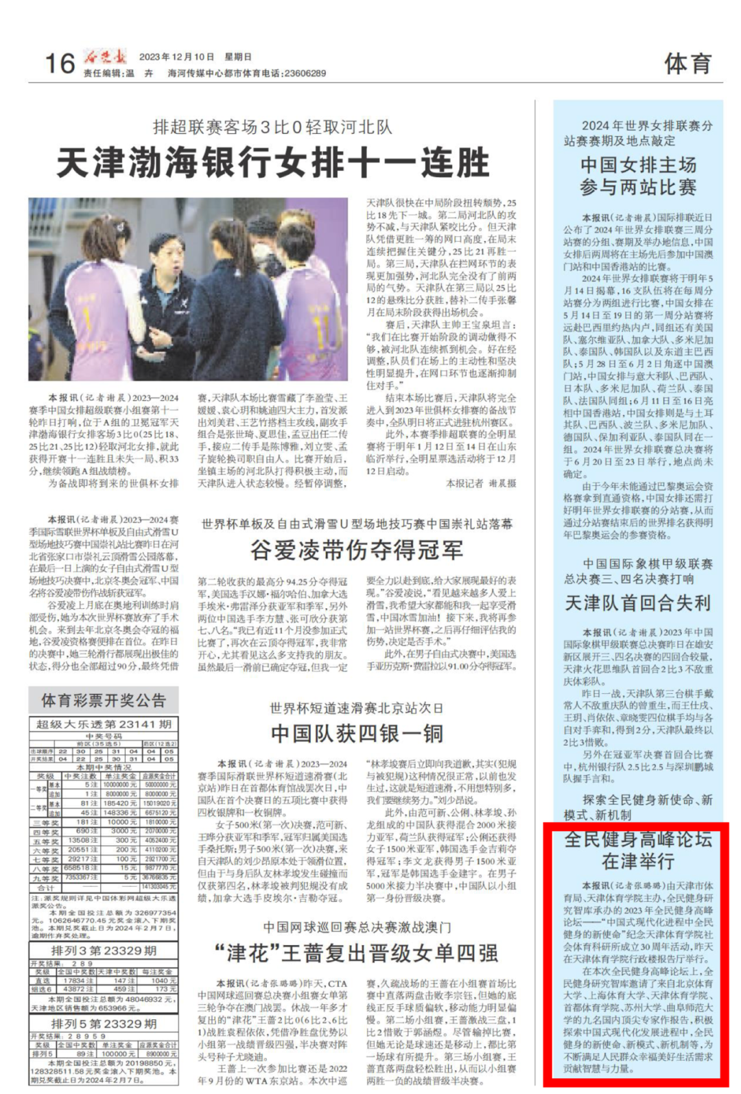 来源:中央广播电视总台国际在线、《中国体育报》《天津日报》《今晚报》