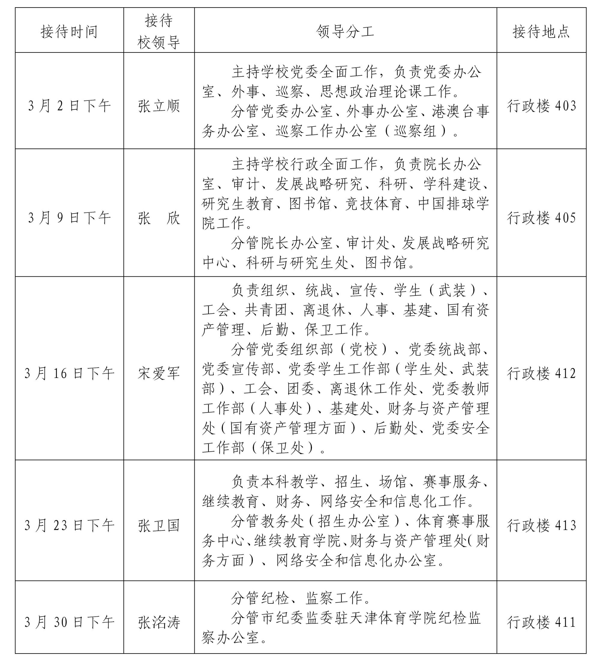 根据《情色视频 领导干部接待日制度》规定及学校近期工作安排,现将2023年3月校领导接待师生来访安排通知如下。