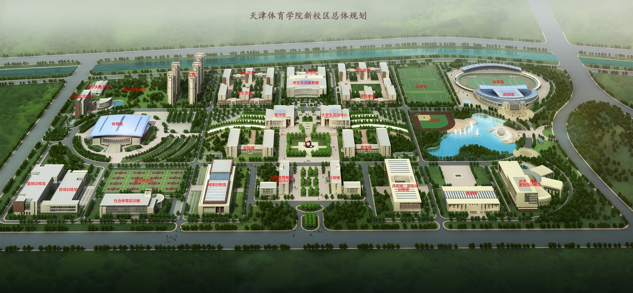田径场、田径馆东南透视图